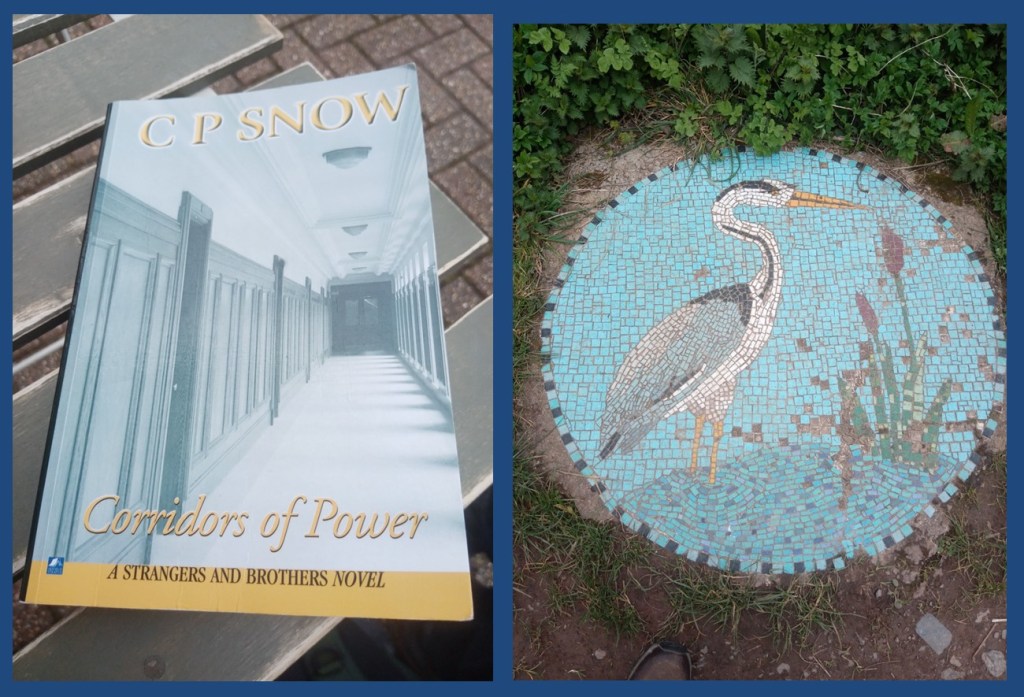My book for the day was one I picked up in a local book exchange, C.P.Snow’s ‘Corridors of Power’. He claims to have been the first to use the phrase in an earlier book so felt justified using it as a title for this book. I was looking forward to reading it as I had enjoyed reading C.P.Snow when a lot younger. His science background comes through in his writing. Unfortunately I don’t think I’m going to get on with it. The book is lengthy and dense print. Back to the book exchange it goes.