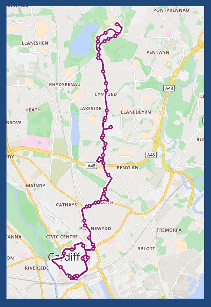 This is one of my regular buses but having said that I still saw parts of the route I had never seen before. The No.52 even goes onto the Cardiff Met University campus at one stage, or twice actually if you ride the bus both ways as I did. It is regularly served with an orange double decker – a bit like the chocolate bars. I wonder if they still exist.