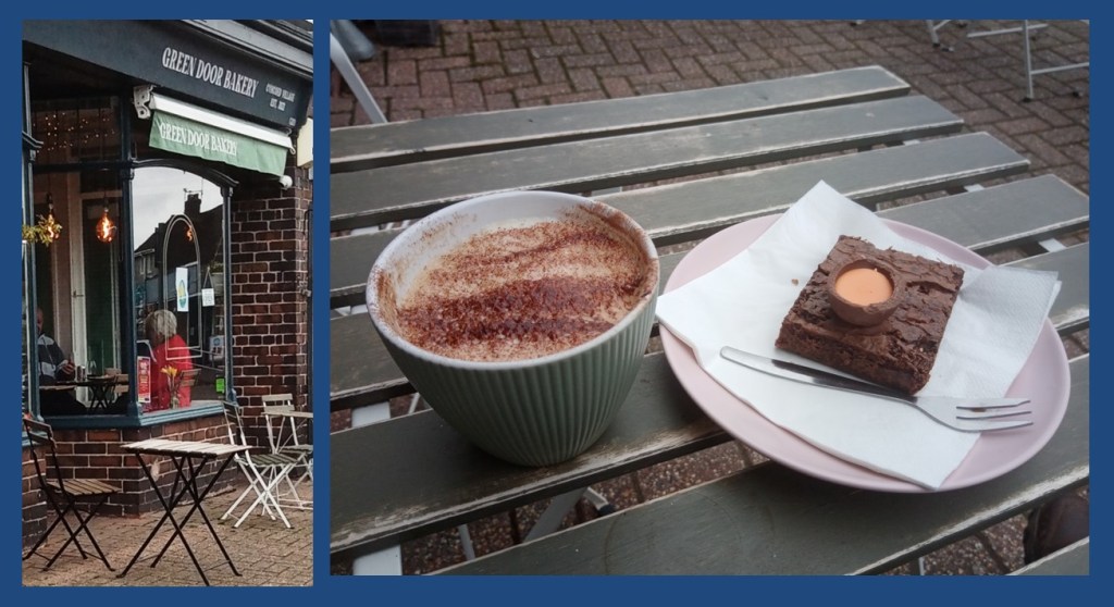 The bus was quiet today as both the schools and universities were on their Easter hols. I did the loop at the northern end, seeing roads I’d never been on before, and then got off in Cyncoed village and sought out the Green Door Bakery. It’s small to say the least, just two tables inside, but luckily it was just about warm enough to sit outside and enjoy my cappuccino and Easter themed cake.