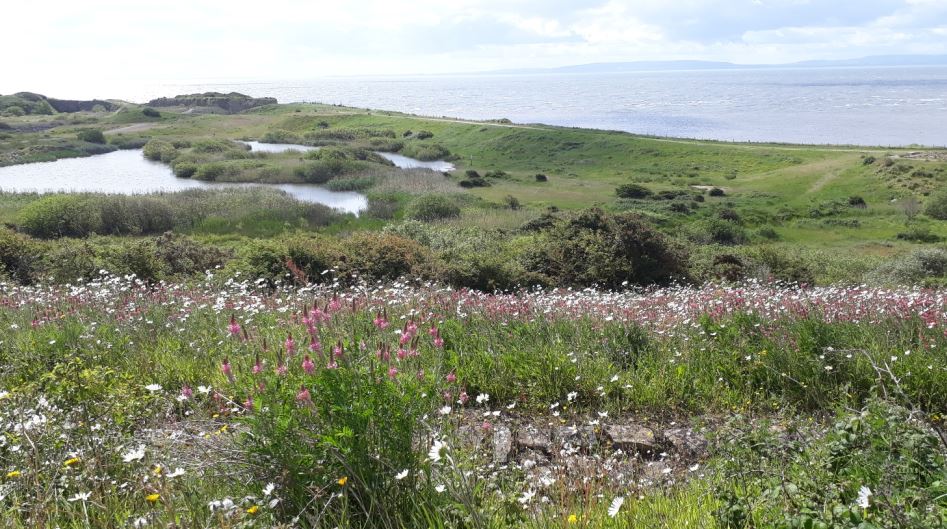 My walk started by going across the nature reserve between the railway line and the coast. It is designated as a ‘Site of Importance for Nature Conservation’ and a mixture of lakes and grassland areas. The area used to be occupied by a cement works, an asbestos factory and a quarry.
