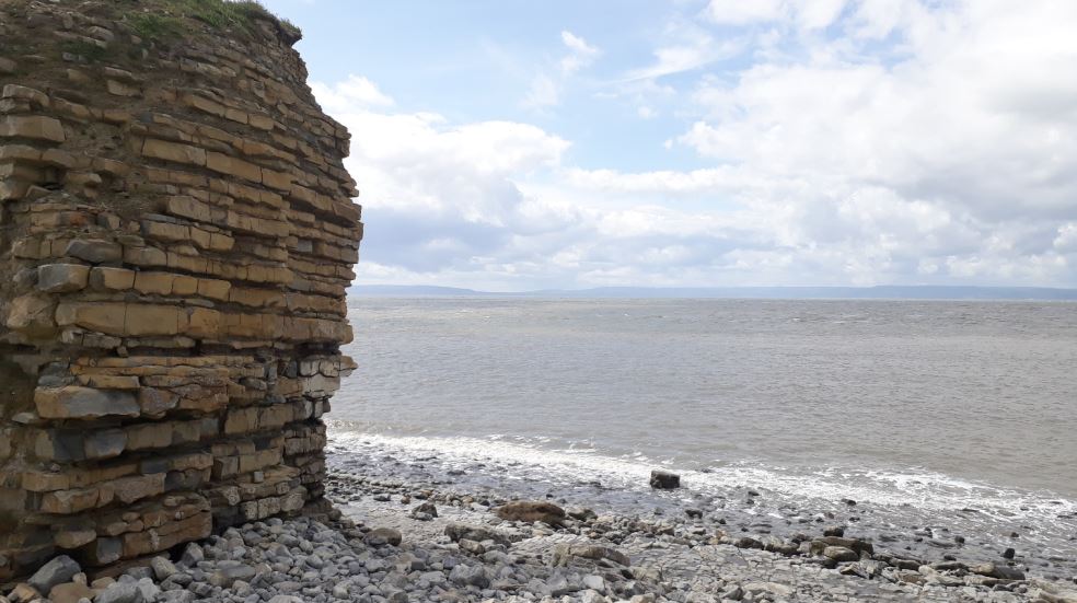 On reaching the coast at Rhoose there is a lovely gap which takes you down on to the pebbly beach with layered cliffs either side of you.