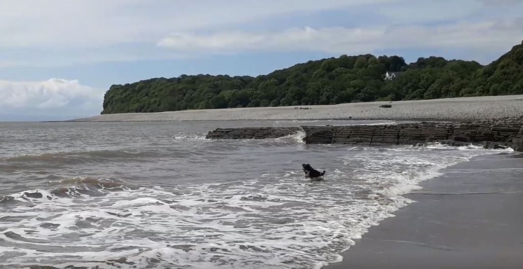 The tide was quite far out today and from Porthkerry we were able to pick our way across of Cold Knap, stopping on one sandy section for him to have a well deserved run in the sea. I popped him on the lead so he could have a rest and dry out and I promptly fell asleep in the sunshine. One of the joys of retirement eh! He is not keen on swimming but had always enjoyed chasing the waves back and forth along the beach getting in as deep as his tummy.