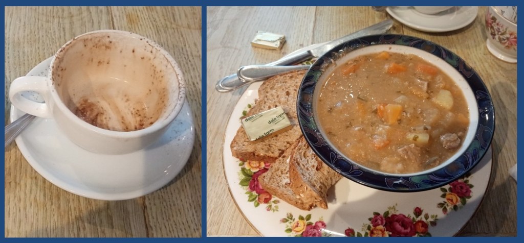 Lunch was taken in Jaspers Tea Rooms, popular even in winter. I had the cawl, Welsh for stew but it sounds much better and tastes better too come to that. There was just time for a mooch along the high street and the post-Christmas sales – half price Christmas cards etc, before catching the No.24 back to town.