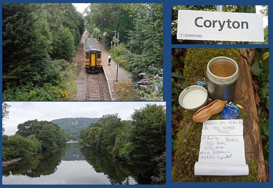 A cunning plan to visit Brithdir station, find a geocache and catch the same train coming back down the valley from Rhymney worked but it was a bit of a scamper so much so I forgot to take a picture of the actual multi-cache. You’ll have to make to with a picture of the lovely valley and the pub sign.