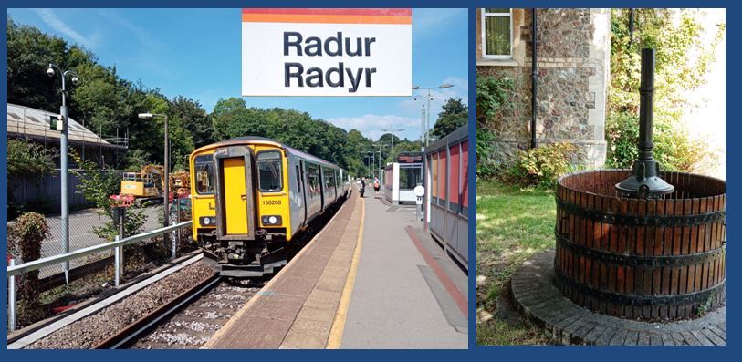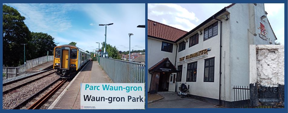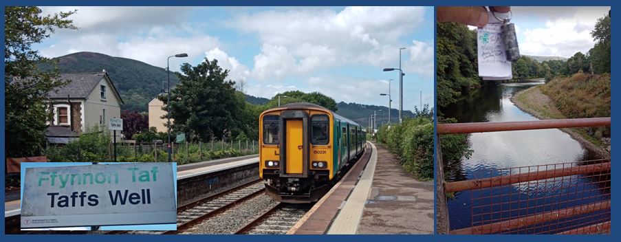 Lots of work going on here in Aug 2022 with the construction of the TfW south Wales Metro depot and control centre. Look in the other direction however and its a completely different scene with the lovely Garth hill in the background. Took a walk up the bank of the Taff, found a geocache and then visited the actual Taffs Well thermal spring.