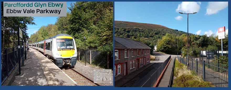 Always nice to explore the area around this station, the old iron works HQ, the little museum, the Archives building, the vernacular and more. Took a walk a little way up the hill to find a geocache and hen down the path parallel to the track to Ebbw Vale Parkway. And the sun shone!