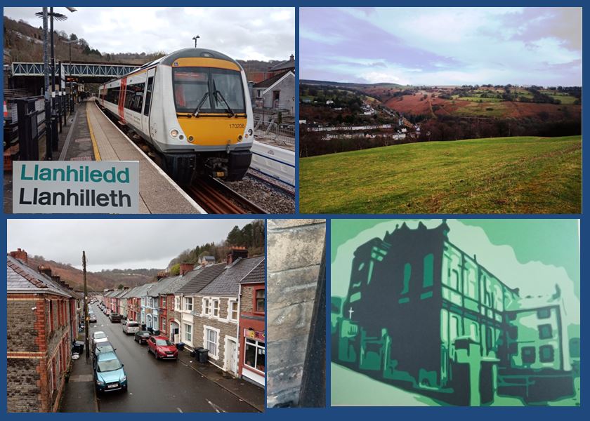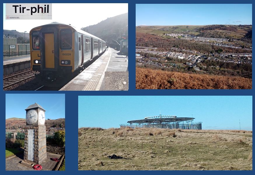 I walked from Tir-phil station up over Cefn y Brithdir (446m) then down into Pontlottyn, lunch in the Lord Nelson before catching one of the new Flirt trains back to Cardiff.