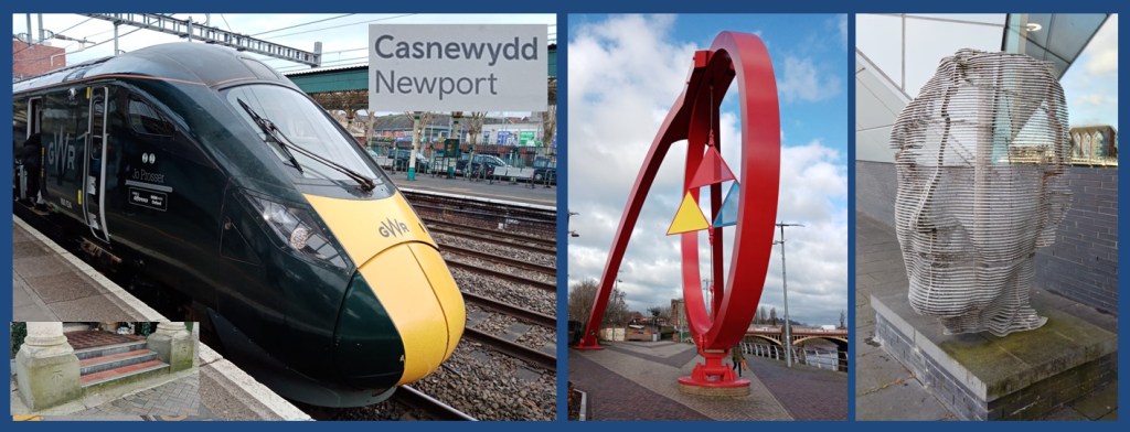 A busy day in Newport doing a recce for when I take a group there soon. I was looking at the history of the Chartist’s Rising of 1839, the castle, renovated market, sculptures, mosaics and statues as well as the museum and art gallery. Oh, and I found an unusual pair of benchmarks on the pillars of the Queen’s Hotel.