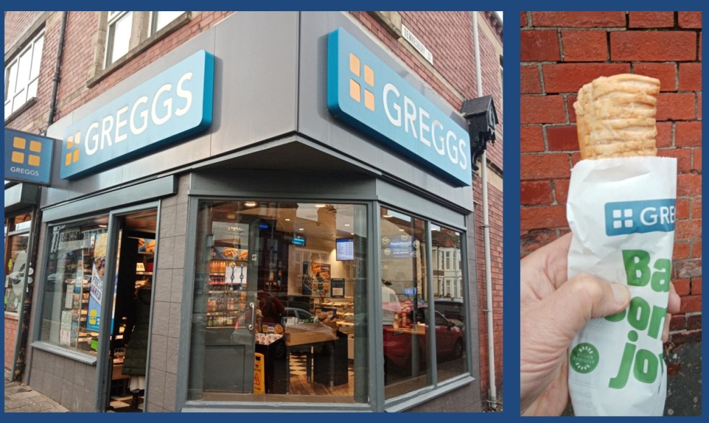 I needed to grab a bit of sustenance on the hoof today and what better than a Greggs Vegan Sausage Roll. Greggs has been at this location since at least 2008.