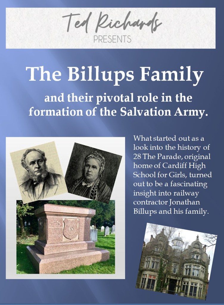 The Billups Family lived at 20 The Parade, Tredegarville, Cardiff which later became Cardiff High School for Girls. This talk looks at the pivitol role the Billups family appear to have had in the formation of the Salvation Army.